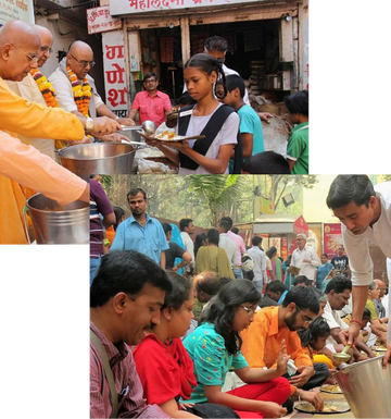 As per the Vedic scriptures, food (Anna) should first be offered to Lord Krishna before sharing it with others for physical and spiritual nourishment. The Bhagavad Gita 3.13 states yajña-śiṣṭāśinaḥ santo, mucyante sarva-kilbiṣaiḥ, bhuñjate te tv aghaṁ pāpā, ye pacanty ātma-kāraṇāt - “The devotees of the Lord are released from all kinds of sins because they eat food which is offered first for sacrifice. Others, who prepare food for personal sense enjoyment, verily eat only sin”.